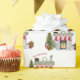 Papel De Presente Cheerful Christmas Scene Fireplace Family Name