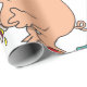 Um porco cheio com cachorro-quente e bebida de cola. Este design parece realmente eficaz nestes papéis de enrolamento
