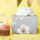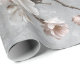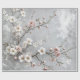 As flores deliciadas de cereja, em cor-de-rosa e branco macio, são dispostas contra um fundo texturizado, criando uma composição serena e elegante