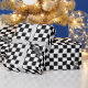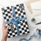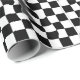 Esse papel único e na moda apresenta um design de tabuleiro de xadrez, perfeito para presentes de empacotamento para qualquer amante de xadrez. Os quadrados pretos e brancos são organizados em um padrão lúdico e atraente, adicionando um toque de elegância a qualquer ocasião de dar presentes.