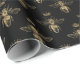 Este papel de embrulho apresenta folha de ouro falsa em gico O padrão das abelhas rainhas em fundo preto.