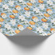 Papel De Presente Chic Flores Azuis Brancas Laranjas Chá de Noiva