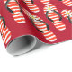 Par de flip-flops listrados vermelhos e brancos com flor margarida em fundo vermelho. A cor de fundo pode ser alterada.