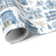 Papel De Presente Chinoiserie Blue Christmas Village Wrapping Paper