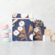 Papel De Presente Chique Azul Profundo Padrão de Margarida Retrófica