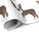 A ilustração original do desenho de Destei de um cão da raça Boston Terrier, de cor casaco branca e castanha de chocolate, como um padrão.