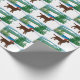 Chocolate Labrador Winter View Wrapping Paper para amantes de cachorros que amam Labradores. Belo design de chocolate Labrador Silhouette com Papai Noel. Neve e árvores verdes. Criada por Naomi Ochiai.