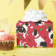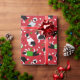 Cães da Boca-Cola em roupas festivas de férias vestindo chapéus de Papai Noel, chifres, cordas de luzes e suéteres de bolinhas e argyle em fundo vermelho com ornamentos espalhados.