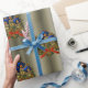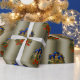 A festive Christmas wrap featuring a colorful pattern of Xmas wreaths, with candles and holly to add a colorful and elegant touch to your gifts this holiday season.