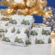 A charming holiday tree beautifully nestled in a vibrant green retro truck, all captured in stunning watercolor