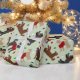 Cães lindos de labradoodle vestidos em roupas festivas de férias, chapéus de Papai Noel e blusas de argila com Enfeites de natal dispersos em fundo verde.