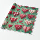 Papel De Presente Christmas Quilted Hearts Green Red White