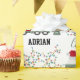 A cute illustration of a Christmas recycling garbage truck wearing a Santa hat and decorated in Christmas lights with words "Merry Christmas" and your own custom name. An ideal Christmas wrapping paper for garbage truck enthusiasts big or small, girls or boys. Customize the name and make it your own.