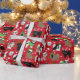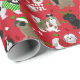 Cães Shih Tzu de Natal bonitos com cores casaco, pretas, brancas, cinzas, ouro e máscara, vestidos em roupas festivas de Natal, chapéus de Papai Noel e blusas de argila com padrão de Enfeites de natal espalhados.