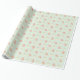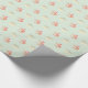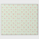 Fun Christmas pattern of hand painted prawns wearing Santa hats and pavlovas on a green background.