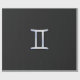 Um cromo prateado como o símbolo Gemini zodiac se aplica em um fundo de impressão de textura de design de pele cobra preta. Um design moderno urbano para uma ideia personalizada de presente de aniversário de excelente. Use o link "Perguntar a este Designer" para entrar em contato conosco com suas solicitações especiais de design ou para obter assistência com suas necessidades de personalização.