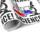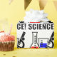 Um produto que mostre o entusiasmo para a ciência. O design mostra uma taça com um produto químico azul, uma garrafa com um líquido vermelho. Um microscópio senta-se à direita.