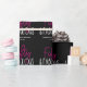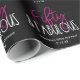 Esta divertida design de papel de embrulho de aniversário para ela é sobre comemorar fazer 50 anos. O texto diz Cinquenta e fabuloso em rosa e preto. Há também espaço para texto personalizado, como o nome da mulher de aniversário e a data de celebração.