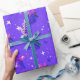 Enrole todos os presentes de férias nesta elegante design. Este design tem um padrão uniforme com fundo violeta azul e inclui sinos de Natal roxos e azuis com fitas roxas, estrelas brancas e flocos de neve brancos a cair.