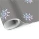 cinza bonito e papel de embrulho de design com floco de neve roxo.