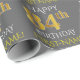 Papel De Presente Cinza, Faux Dourado "FELIZ 84 ANIVERSÁRIO"