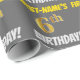 Este design de papel de embrulho apresenta uma mensagem como "PRIMEIRO NOME DO 6 DE ANIVERSÁRIO!", com o "6" a ter uma aparência falsa/imitada de cor dourada, e com o nome e "ANIVERSÁRIO" numa letra divertida e ousada. O nome é personalizável e o fundo é cinza colorida (cinza). Um papel de embrulho como este poderia talvez ser usado para embrulhar presentes de aniversário que são dados a alguém em comemoração do seu sexto aniversário. [~Z0000211]