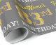 Este design de papel de embrulho apresenta uma mensagem como "FirstName’s 83rd BIRTHDAY!", com o "83º" a ter uma aparência falsa/de cor dourada. O nome pode ser personalizado e o fundo é cinza colorida (cinza). Talvez possa ser utilizado quando se dá presentes para o oitenta e terceiro aniversário de alguém. [~Z0000185]