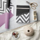 Padrão elegante, na moda e sofisticado de zigue-zague (chevron) em cinzas e cor branca com manchas roxas e pretas de cor. Presente moderno e moderno, perfeito para o amante ziguezague na sua vida.