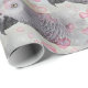 Tema feminino rosa e cinza com uma bela Cinza africana, papagaio e corações cor-de-rosa flutuante e cinzas fazem um design translúcido sonhador. Um padrão delicado e feminino de corações.