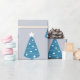 PAPEL DE PRESENTE CINZAS COM ÁRVORES DE NATAL AZUL E BRANCO