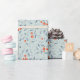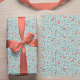 Feriados modernos de inverno/presentes sazonais de Natal que embrulham papel com um padrão vermelho de bagas de laranja e ramos de folhagem sobre um fundo azul comum (editável).++++++ Se você quiser alterar a cor de fundo, selecione a opção PERSONALIZAR.