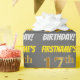 Este design de papel de embrulho apresenta uma mensagem como "PRIMEIRO NOME'S 17th BIRTHDAY!", com o "17º" a ter uma aparência de cor falsa/imitada em forma de ouro, e com o nome e "BIRTHDAY" numa fonte divertida e ousada. O nome é personalizável e o fundo é cinza colorida (cinza). Um papel de embrulho como este poderia talvez ser usado para embrulhar presentes de aniversário que são dados a alguém em comemoração do seu 17º aniversário. [~Z0000211]