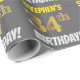 Este design de papel de embrulho apresenta uma mensagem como "STEPHEN'S 34th BIRTHDAY!", com o "34º" a ter uma aparência falsa/imitada de cor dourada, e com o nome e "BIRTHDAY" numa fonte divertida e ousada. O nome pode ser personalizado e o fundo é cinza colorida (cinza). Um papel de embrulho como este poderia talvez ser usado para embrulhar presentes de aniversário que são dados a alguém em comemoração de seus trinta e quatro anos de aniversário. [~Z0000211]