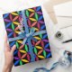 Abstrato geométrico dos círculos entrelaçados, cores brilhantes do arco-íris sobre fundo preto