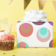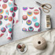 Este papel de embrulho tem uma design moderna do século médio de três círculos de tamanhos diferentes colocados uns sobre os outros em cores da década de 1950.