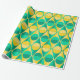 Este papel embrulho tem um design de deco de arte de círculos amarelos e verdes com dois tons dentro de triângulos amarelos e verdes com dois tons.