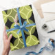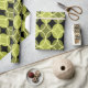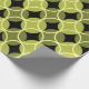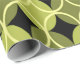 Este papel de embrulho tem uma design moderna do século médio de círculos abertos em círculos fechados em tons de verde e amarelo num campo de preto. Isto pode ser bom para presente de Dia de os pais.