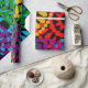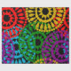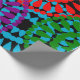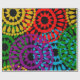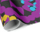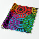Este papel de embrulho tem um design de História Negra de grandes círculos formados por formas de chuva e círculos em vermelho, amarelo, roxo, verde e turquesa.