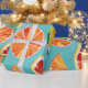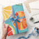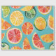 Esta trabalho de arte apresenta um padrão animado e refrescante de frutas de citros, apresentando fatias vibrantes de laranjas, limões, limões e toranjas sobre um fundo brilhante de turquesa. As suculentas e coloridas fatias de fruta são representadas com uma abordagem lúdica e estilizada, capturando a essência do verão e do frescor. O uso de cores ousadas, contrastantes e a disposição circular das frutas criam uma composição dinâmica e atraente que exude energia e zest.