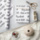 Este papel de embrulho de graduação é branco. Ele tem um padrão de texto para o nome do formando e Classe de 2025. O nome (Mostra: Elizabeth) aparece num guião preto elegante. O outro texto também é preto. Todo o texto pode ser editado.