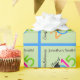 Este papel de papel de embrulho brilhantemente colorido caracteriza um design da graduação. O texto customizável lê: Parabéns (nome pessoal)! e classe de 2015 com um mortarboard que senta-se sobre o "0". O fundo é claro - azul verde e brilhante. Este papel de envolvimento é acentuado com alaranjado, o azul, o cor-de-rosa e verde limão.