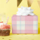 Wrap your gifts in classic, preppy style! This beautiful wrapping paper features a timeless plaid pattern in soft pink and cream, accented with delicate light blue lines. It's a perfect choice for baby showers, birthdays, spring celebrations, or any occasion that calls for a touch of elegant charm.