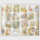 este belo e nostálgico papel de embrulho retrata a imagem de "O Conto de Peter o Rabbit" do livro clássico de Beatrix Potter. As imagens da história de vintage são perfeitas para adicionar um toque especial aos seus presentes ou aos artesanatos.