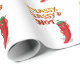 Um doce personagem de pimenta vermelha. Clássico, infeliz e quente! Papel de embrulho personalizado. Papel de embrulho para presentes para amantes de comidas picantes.