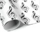 Notas musicais negras e símbolo de clave tripla em fundo branco. A cor de fundo pode ser alterada.