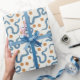 Cobras e maçãs em azul e amarelo. Repita o azulejo padrão.