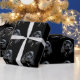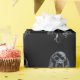 Cocker spaniel preto com uma sugestão do branco na caixa em um papel de envolvimento dos amantes do cão do fundo do preto