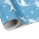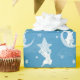 Um belo coelho branco com lua crescente e padrão estelar em fundo azul.