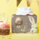 PAPEL DE PRESENTE COELHO BRANCO COM OVOS E FLORES DE PRIMAVERA A LES