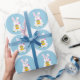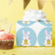 Um coelho da Páscoa giro vestindo uma fita cor-de-rosa, sempre tão feliz segurando em Ovo da Páscoa decorado com Primavera de cores cheias de doce sentado em um pedaço de grama verde com um círculo azul de ovo robins. Use isto para embrulhar um presente para uma garotinha ou garotinha, ou uma família ou amigo desejar-lhes um Felz pascoa.
